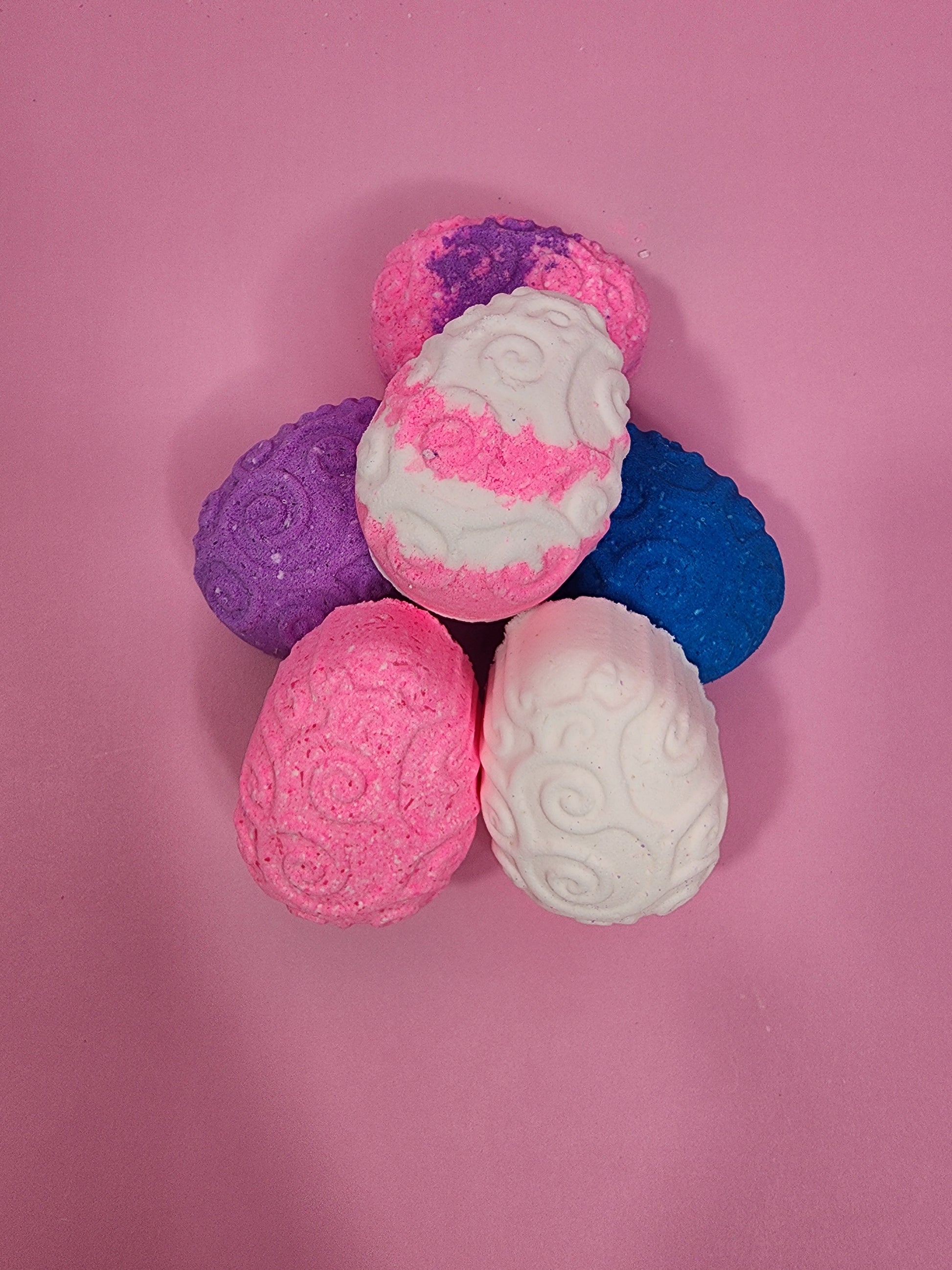 - Vibrant Colors: As each egg-shaped bath bomb dissolves, it releases a burst of vivid colors, transforming your bath into a dazzling display reminiscent of an Easter egg hunt. The playful swirls of pinks, blues, yellows, and greens create a visual feast, turning your bath time into a celebration of color.