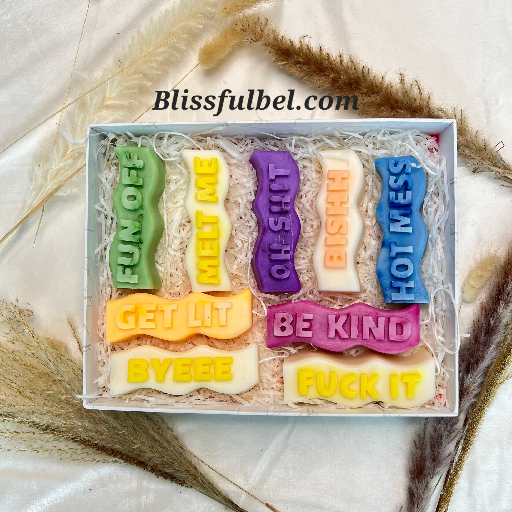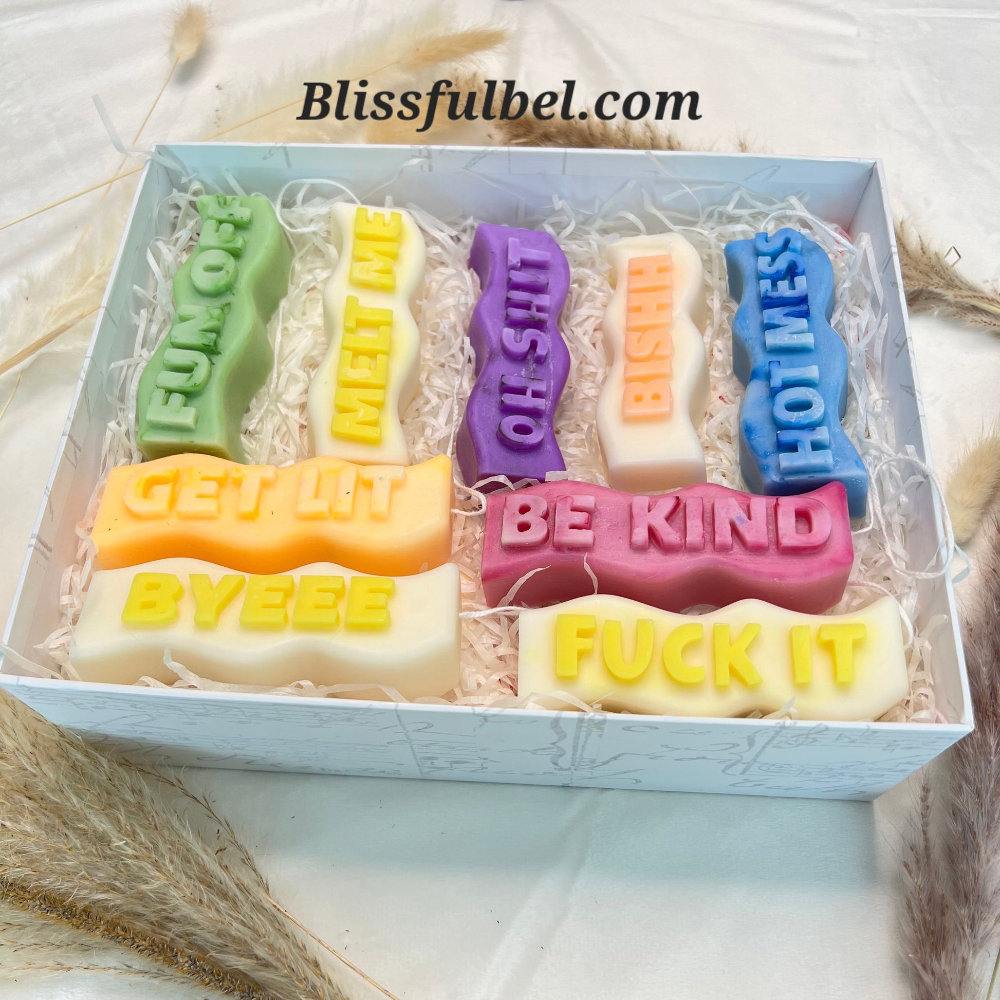 This is a 9 piece candle gift set. Add a little fun to your desk, mantle or home decor with these unique candles. Perfect as a gift. Gift your loved ones this unique candle designed to chanel a constant mood.