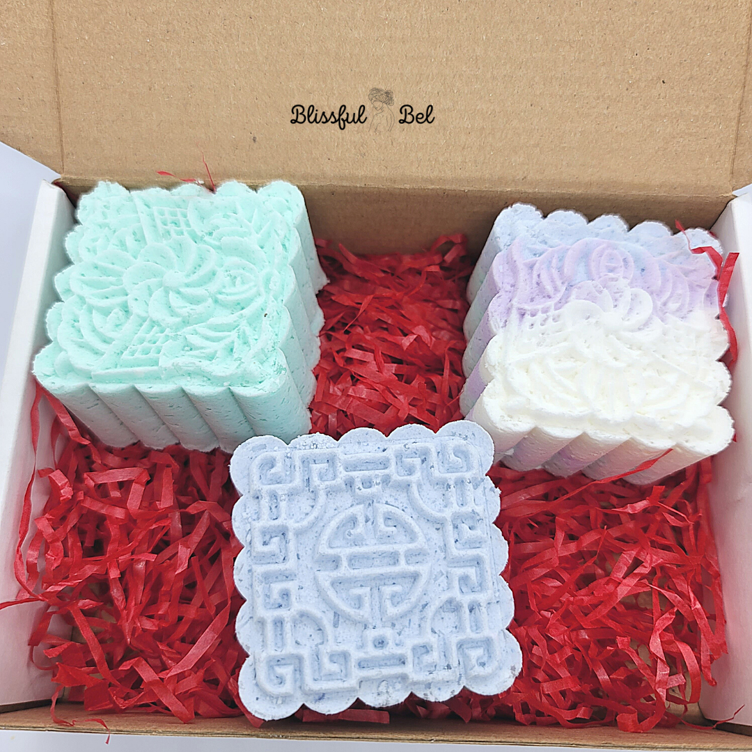 A pack of various scents. Relax and soak away with this novelty bath bomb. The different scents create a spa like atmosphere perfect for that relaxing "me time". Take time for yourself and enjoy a few quiet moments in a relaxing bath with the perfect bath bomb. Run your bath, drop the bath bomb in enjoy the display, if you want to create bubbles add bit more water (a shower head works best if you have one).