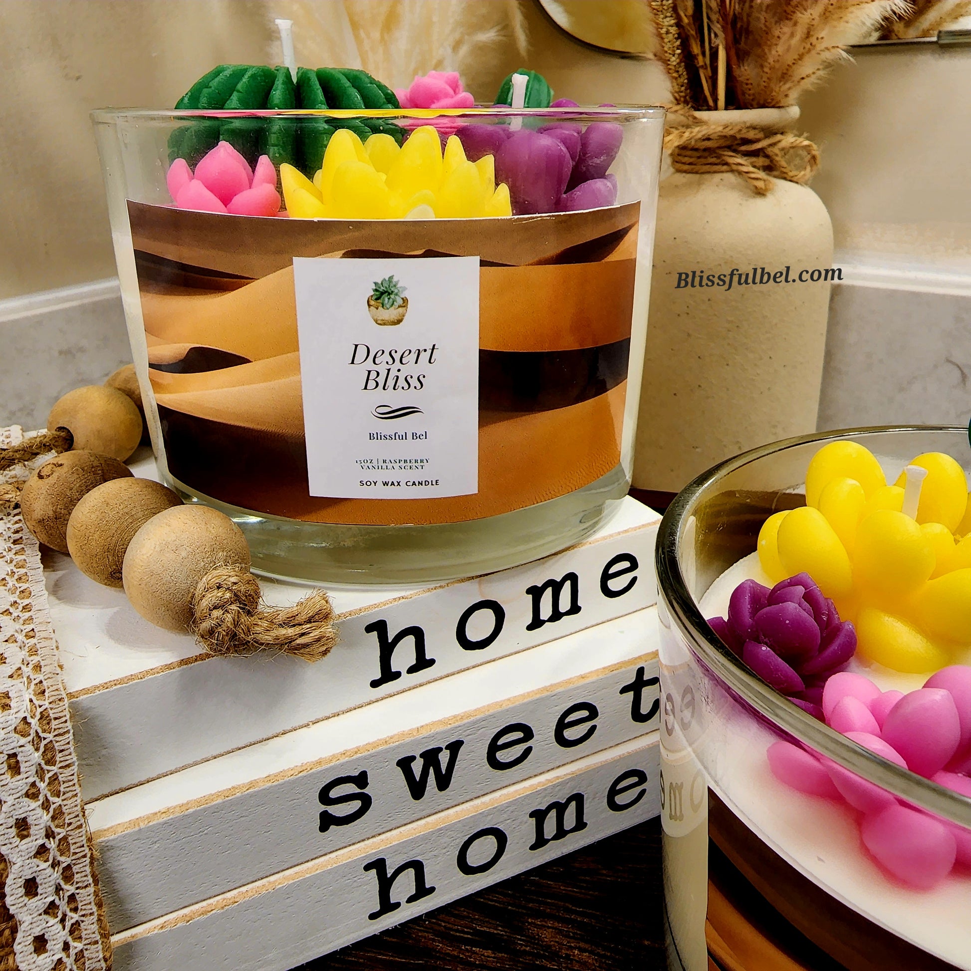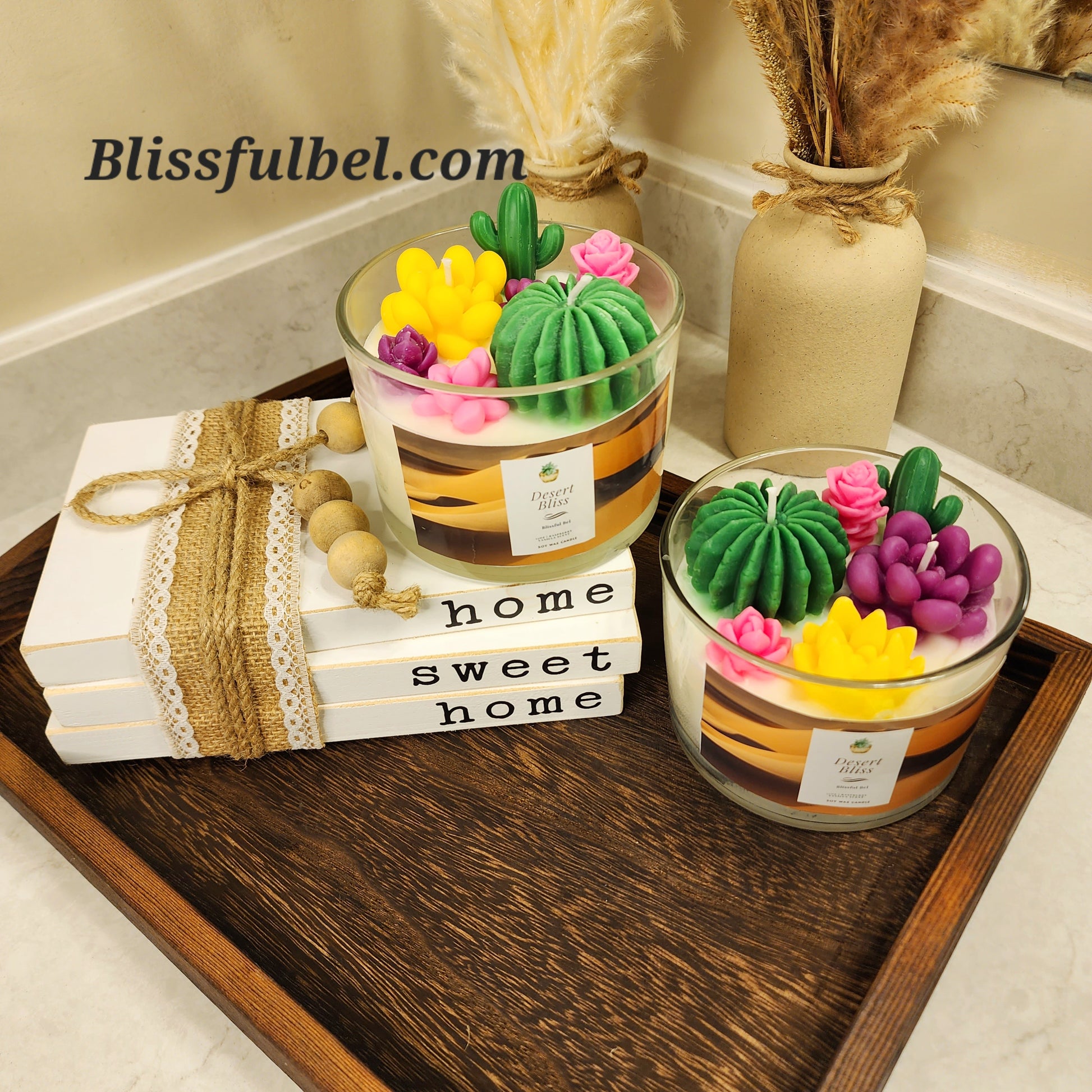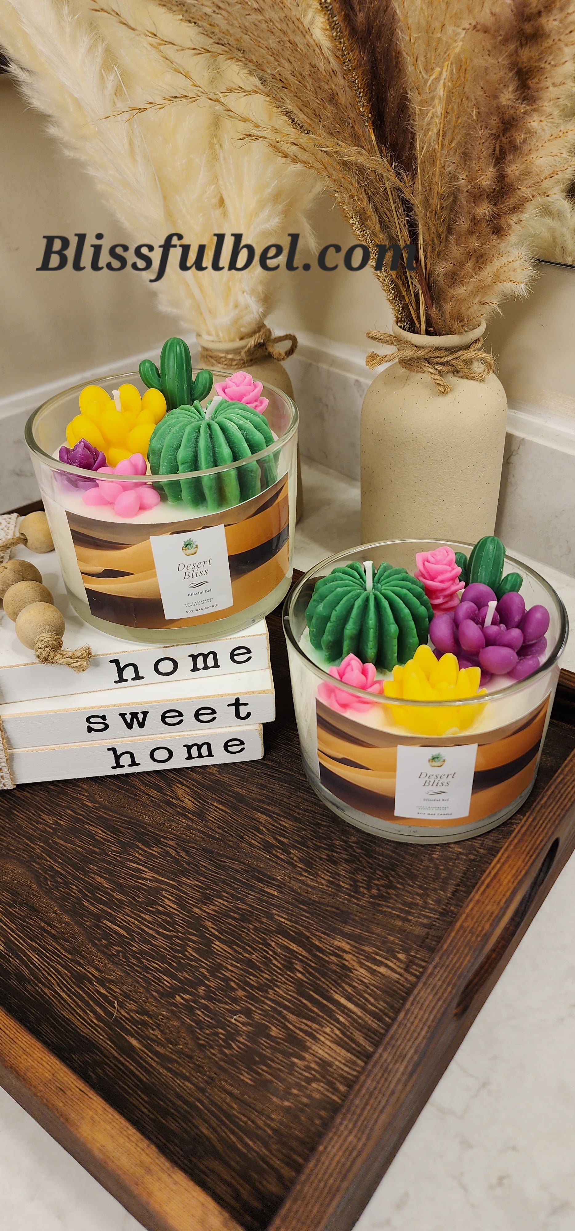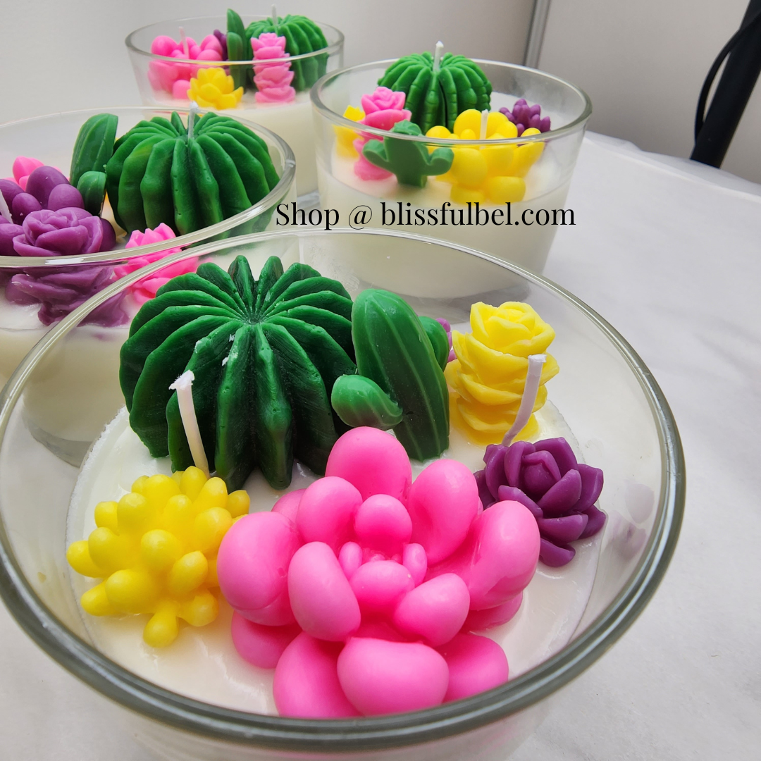 Beautiful and carefully crafted sacculents candle. This candle is perfect for cacti, sacculents and plant lovers. Besides being a great home decor piece,, it also makes a unique gift for birthdays, mother's day, Valentine's day and a Christmas stocking stuffer especially for those loved ones who can't keep a plant alive.