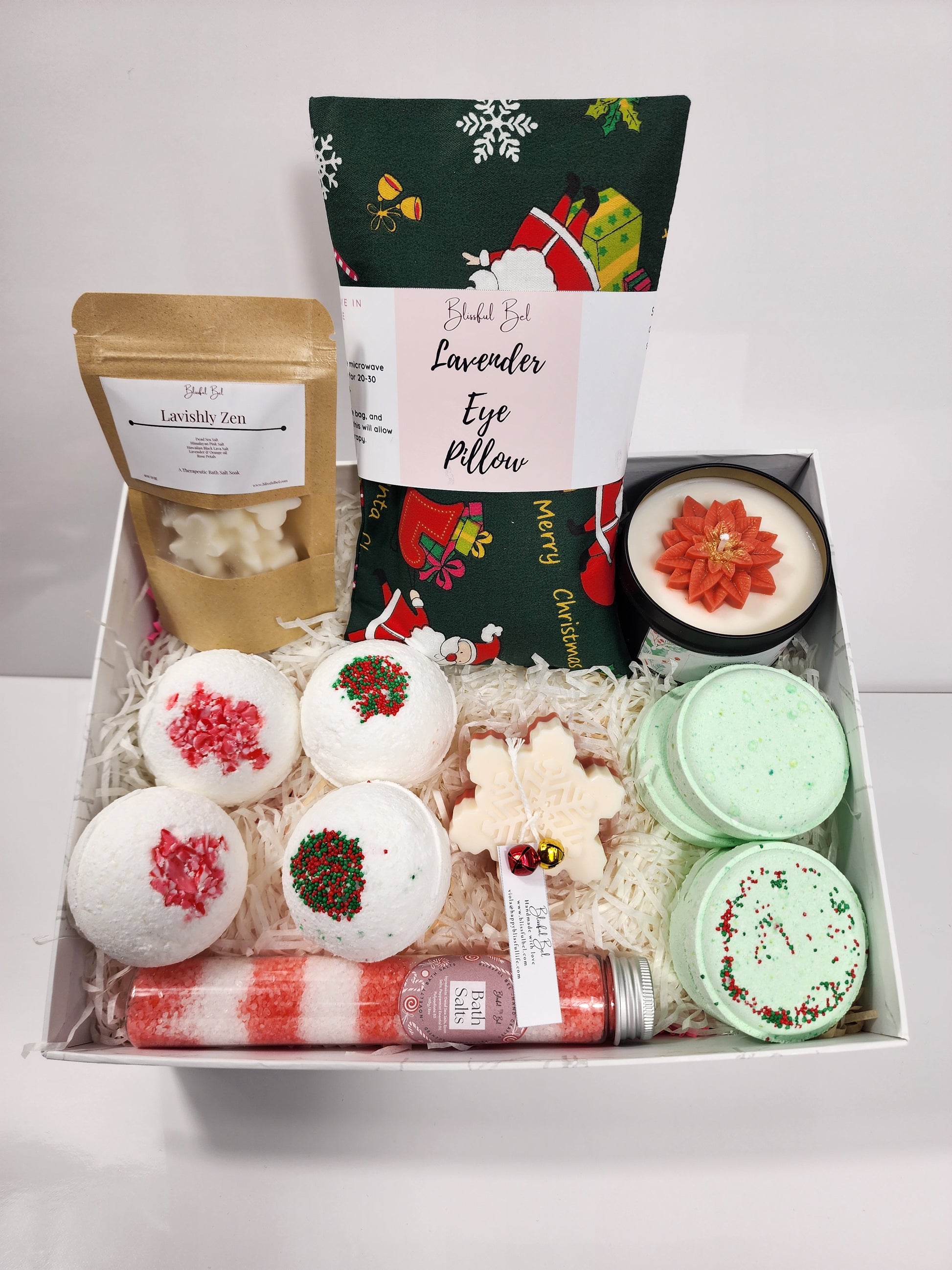 1. Bath Bombs (x4): Dive into a rejuvenating winter wonderland with these fizzy delights. As the bath bomb dissolves, let the refreshing scents envelop you, transforming your bath into a chilly, invigorating North Pole oasis.